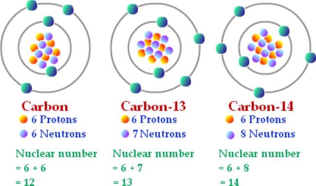 For example, carbon-13 and carbon-14 are both isotopes of carbon, as they all contain the same amount of protons but each have a different amount of neutrons.